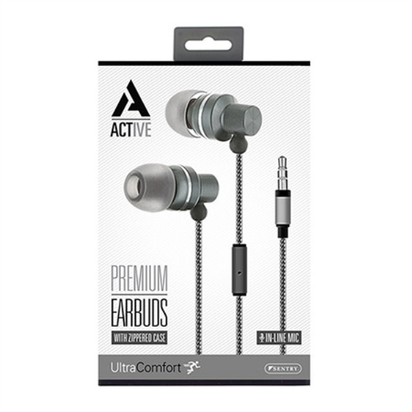 Active Series Premium Wired Ear Buds w. Mic and Carrying Case
