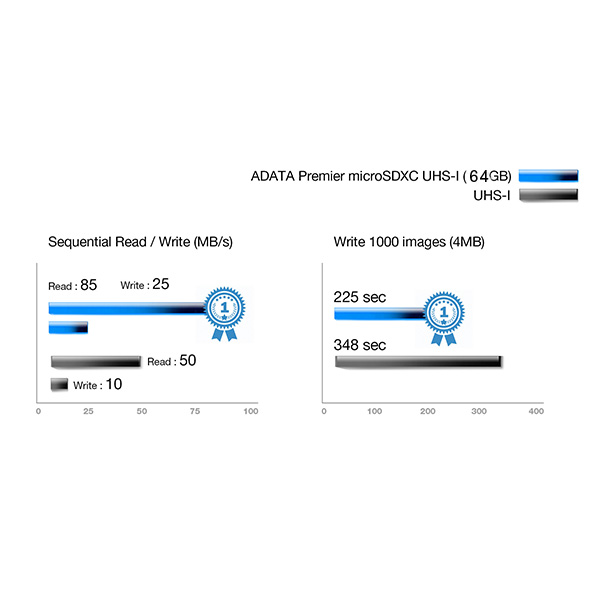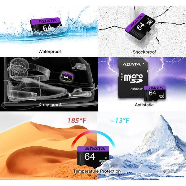 Take care of your customers' high-quality recording, data storage, and more with ADATA's 64GB Premier microSDHC UHS-I / Class 10 Memory Card with SD Adapter! ADATA's 64GB Premier microSDXC/SDHC UHS-I Class 10 memory cards provide read speeds for your customers of up to 100MB per second for rapid file transfers. Featuring a Class 10 performance rating, the 64GB Premier microSDXC/SDHC UHS-I memory cards enable uninterrupted, high-quality recording of Full HD video on smartphones and tablets. It also meets the A1 standard for quicker and smoother execution of APPs. Being V10 (Video Speed Class) qualified, they can record up to 10MB of video per second. Backed by solid multi-point protection, the 64GB Premier microSDXC/SDHC UHS-I memory cards allow your customers to easily record and store their memories! Additionally, the memory card comes with an SD adapter that allows it to be used on various devices. ADATA offers an extended lifetime warranty for the 64GB Premier microSDHC UHS-I / Class 10 Memory Card with SD Adapter, ensuring the best quality, performance, and customer satisfaction. Features: Rapid Data Transfer Up To 100MB/s Supports Full HD Video Recording A1 Qualified Faster App Performance Multiple Device Compatibility Includes Micro to SD Adapter High Durability Lifetime Warranty