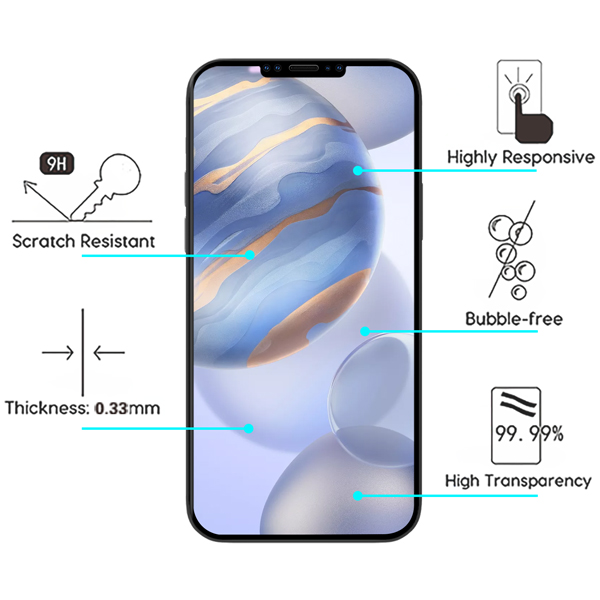 Get the ultimate double-edged protection with the high-performing MYBAT Tempered Glass Screen Protector for the curvaceous Apple iPhone 12 Max / Pro (6.1) Micro-grid technology ensures ultimate touch screen sensitivity and easy application without forming any air bubbles or watermarks in between the screen and the tempered glass screen protector Scratch-resistant surface, with 9H hardness, provides high resistance to shock and damage from sharp objects while providing maximum image clarity Polished, rounded-edge design offers a smooth feel to the perimeter while providing optimal impact protection to the screen Shatterproof technology keeps the user and phone safe from scratches and damages if broken Oleophobic coating prevents excessive fingerprints and oil stains from contaminating the surface, making it easy to clean
