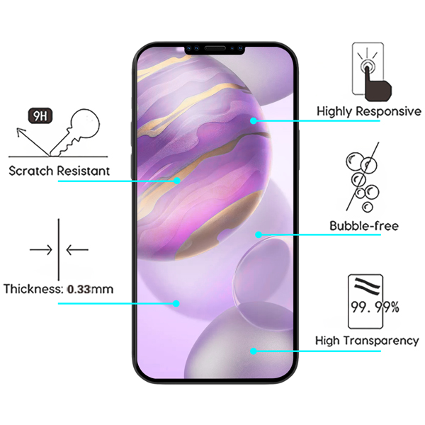 Get the ultimate double-edged protection with the high-performing MYBAT Tempered Glass Screen Protector for the curvaceous Apple iPhone 12 Pro Max (6.7) Micro-grid technology ensures ultimate touch screen sensitivity and easy application without forming any air bubbles or watermarks in between the screen and the tempered glass screen protector Scratch-resistant surface, with 9H hardness, provides high resistance to shock and damage from sharp objects while providing maximum image clarity Polished, rounded-edge design offers a smooth feel to the perimeter while providing optimal impact protection to the screen Shatterproof technology keeps the user and phone safe from scratches and damages if broken Oleophobic coating prevents excessive fingerprints and oil stains from contaminating the surface, making it easy to clean