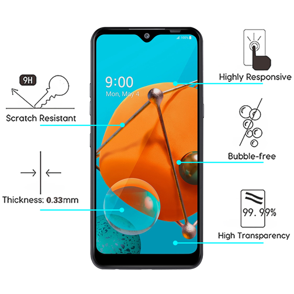 Get the ultimate double-edged protection with the high-performing MYBAT Tempered Glass Screen Protector for the curvaceous LG-K51 Micro-grid technology ensures ultimate touch screen sensitivity and easy application without forming any air bubbles or watermarks in between the screen and the tempered glass screen protector Scratch-resistant surface, with 9H hardness, provides high resistance to shock and damage from sharp objects while providing maximum image clarity Polished, rounded-edge design offers a smooth feel to the perimeter while providing optimal impact protection to the screen Shatterproof technology keeps the user and phone safe from scratches and damages if broken Oleophobic coating prevents excessive fingerprints and oil stains from contaminating the surface, making it easy to clean