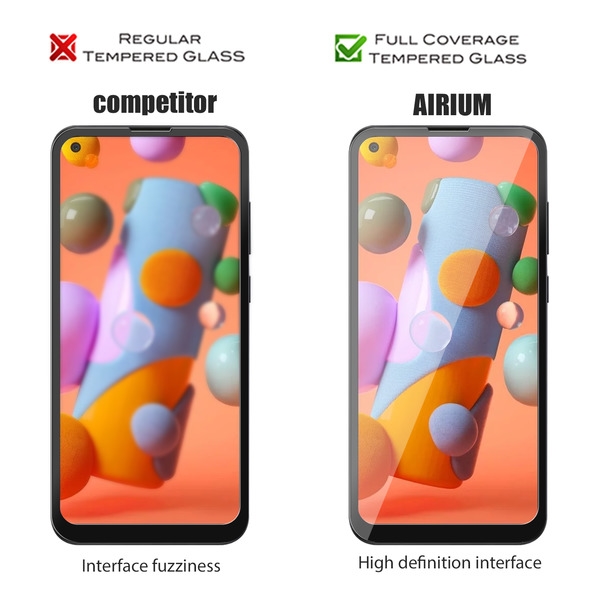 Airium Full Coverage Tempered Glass Screen Protector for Samsung Galaxy A11 - Black