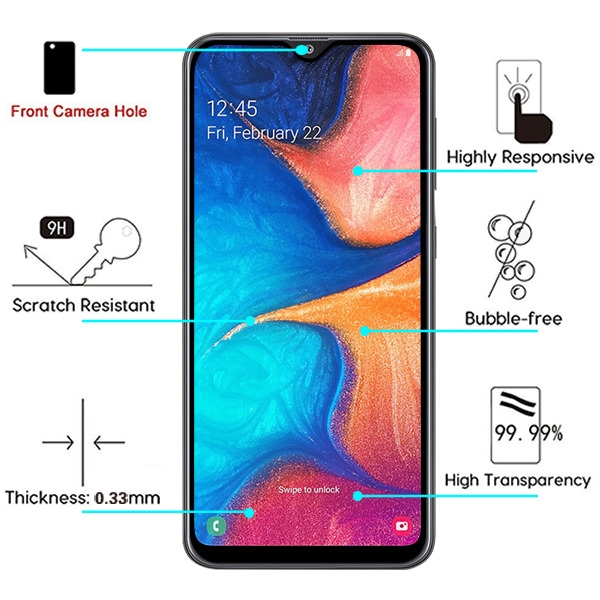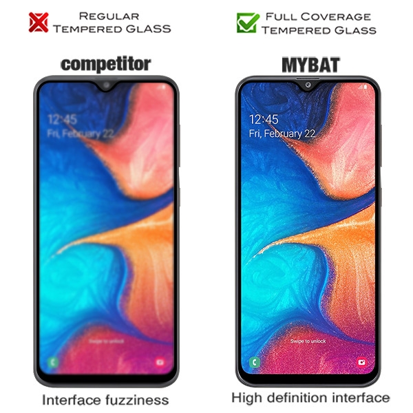 Get the ultimate double-edged protection with the high-performing MYBAT Tempered Glass Screen Protector for the curvaceous SAMSUNG Galaxy A20 Micro-grid technology ensures ultimate touch screen sensitivity and easy application without forming any air bubbles or watermarks in between the screen and the tempered glass screen protector Scratch-resistant surface, with 9H hardness, provides high resistance to shock and damage from sharp objects while providing maximum image clarity Polished, rounded-edge design offers a smooth feel to the perimeter while providing optimal impact protection to the screen Shatterproof technology keeps the user and phone safe from scratches and damages if broken Oleophobic coating prevents excessive fingerprints and oil stains from contaminating the surface, making it easy to clean
