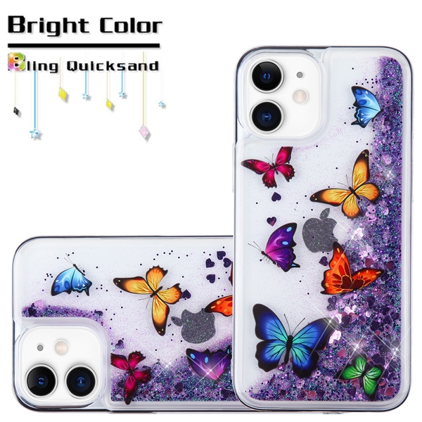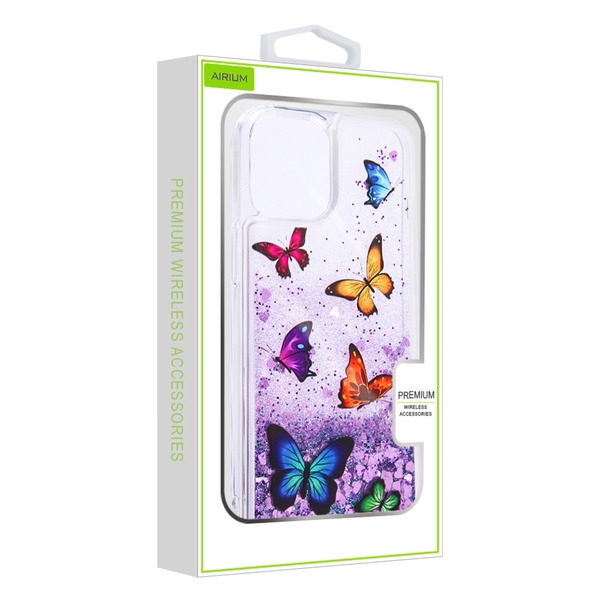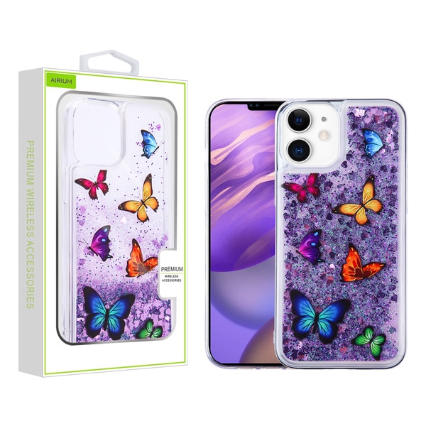 Airium Glitter Hybrid Protector Case for Apple iPhone 12 mini (5.4) - Butterfly Dancing & Purple Quicksand (Hearts)
