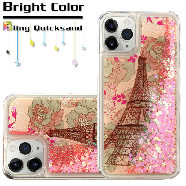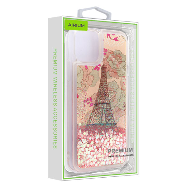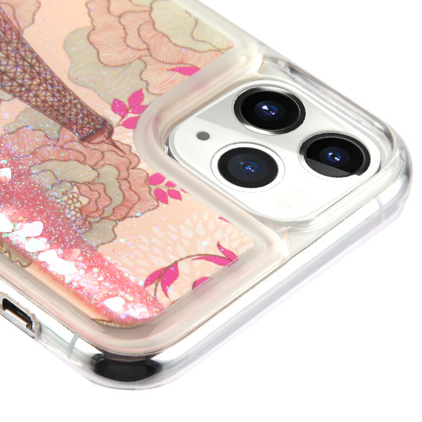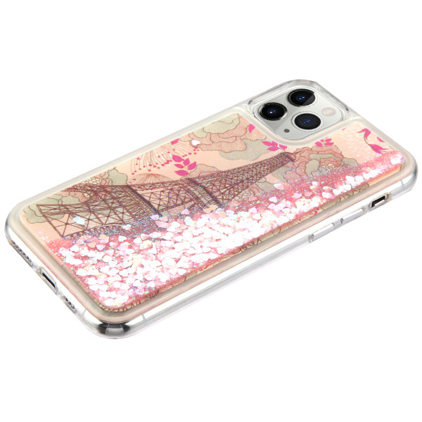 Airium Quicksand Glitter Hybrid Protector Cover for Apple iPhone 11 Pro - Eiffel Tower & Pink Hearts
