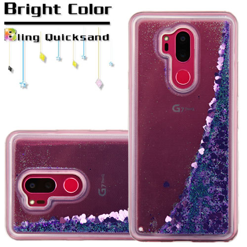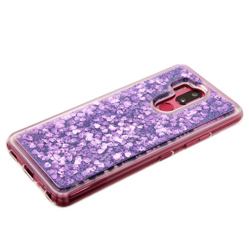 Airium Quicksand Glitter Hybrid Protector Cover for Lg G710 (G7 Thinq) - Hearts & Purple