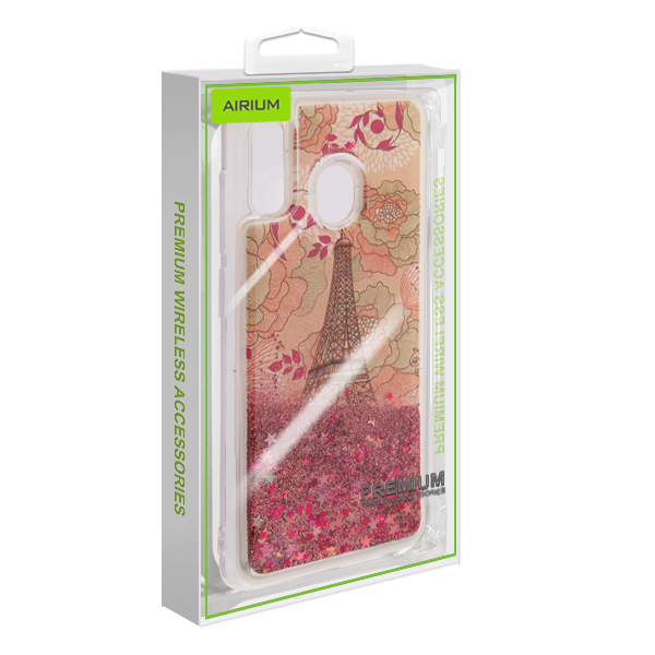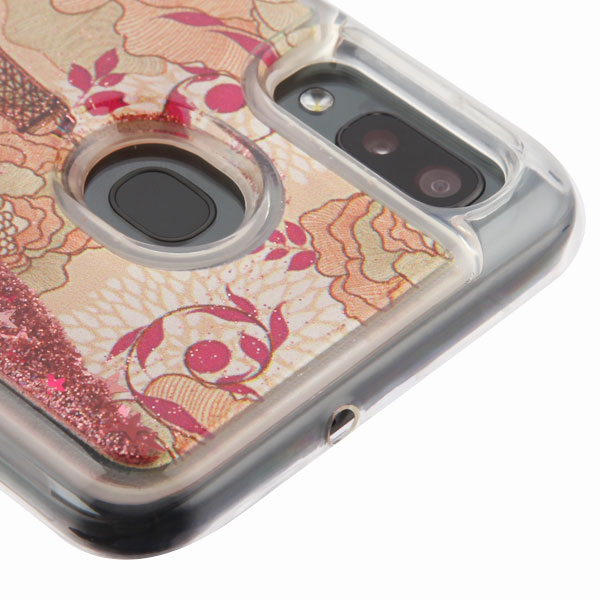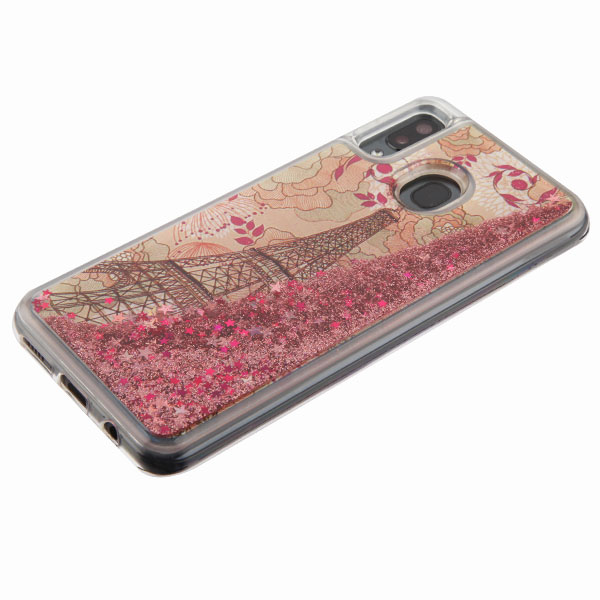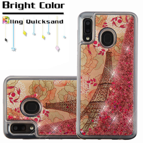 Airium Quicksand Glitter Hybrid Protector Cover for Samsung Galaxy A20 - Eiffel Tower & Rose Gold Stars