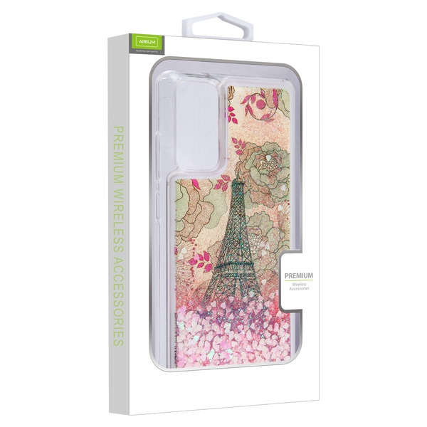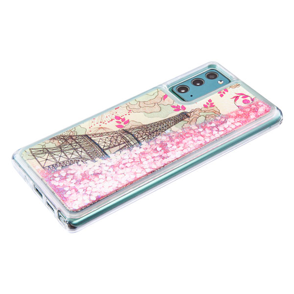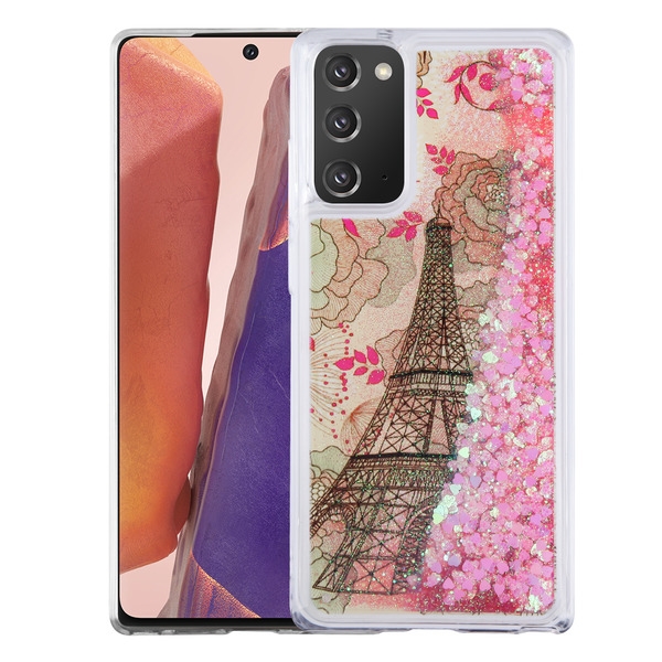 Airium Quicksand Glitter Hybrid Protector Cover for Samsung Galaxy Note 20 - Eiffel Tower & Pink Hearts