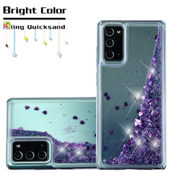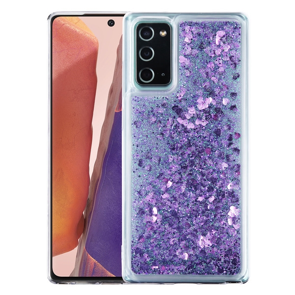 Airium Quicksand Glitter Hybrid Protector Cover for Samsung Galaxy Note 20 - Hearts & Purple