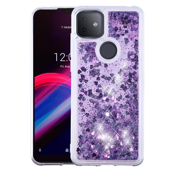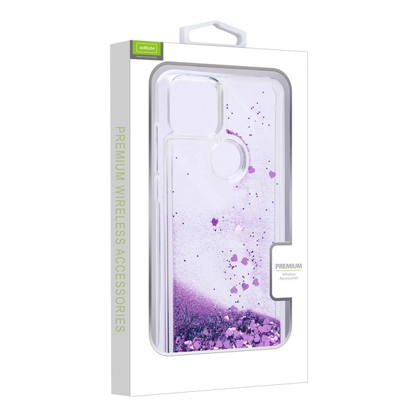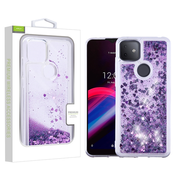 Airium Quicksand Glitter Hybrid Protector Cover for T-mobile Revvl 4+ / TCL Revvl 4+ - Hearts & Purple
