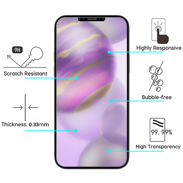 0.3mm thick premium-grade tempered glass screen protector provides maximum image clarity and ultimate touch screen sensitivity. 9H hardness scratch-resistant surface provides high resistance to shock, impact and damages from sharp objects. Polished, rounded-edge design offers a smooth feel to the perimeter while providing ultimate impact protection to the screen. Shatterproof technology keeps the user and phone safe from scratches and damages if broken. Oleophobic coating prevents excessive fingerprints and oil stains from contaminating the surface, making it easy to clean. Simple application adhesive allows bubble-free installation that is perfectly flat and spotless every time. PLEASE NOTE: All sales are FINAL. No returns or exchanges on -LCDSCPR90 / SC90 items.