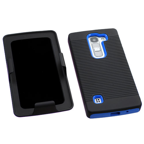 Asmyna Advanced Armor Protector Cover (with Black Holster) for Lg H443 (Escape 2) / Logos - Black / Dark Blue