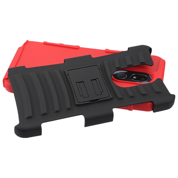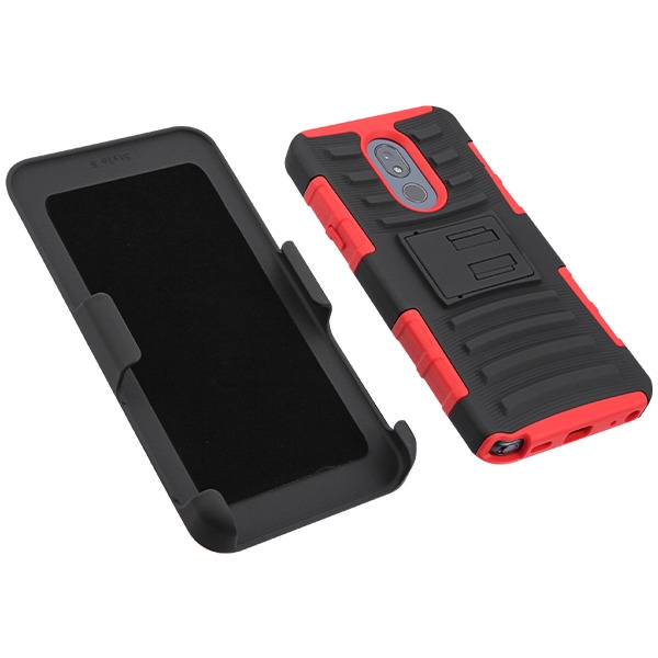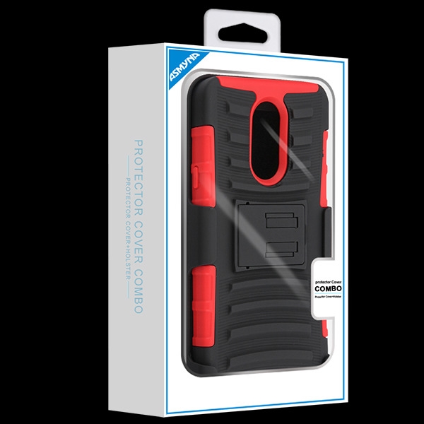 Asmyna Advanced Armor Stand Protector Cover Combo (with Black Holster) for Lg Stylo 5 - Black / Red