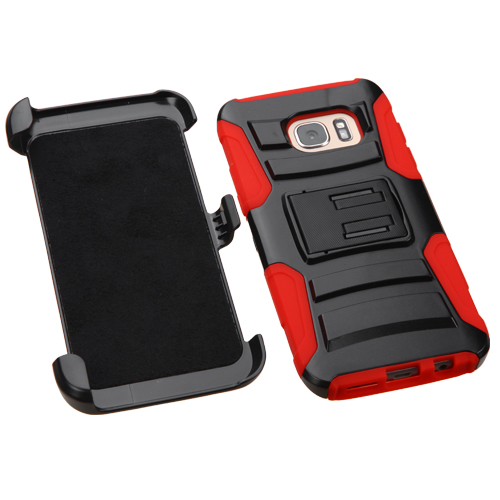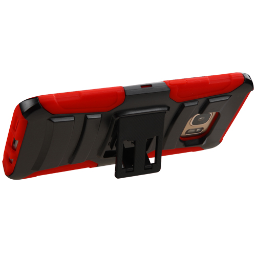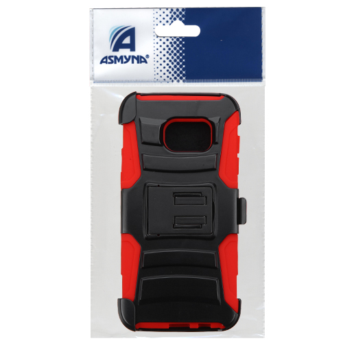 Asmyna Advanced Armor Stand Protector Cover Combo (with Black Holster) for Samsung G935 (Galaxy S7 Edge) - Black / Red