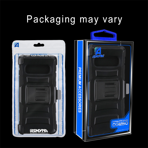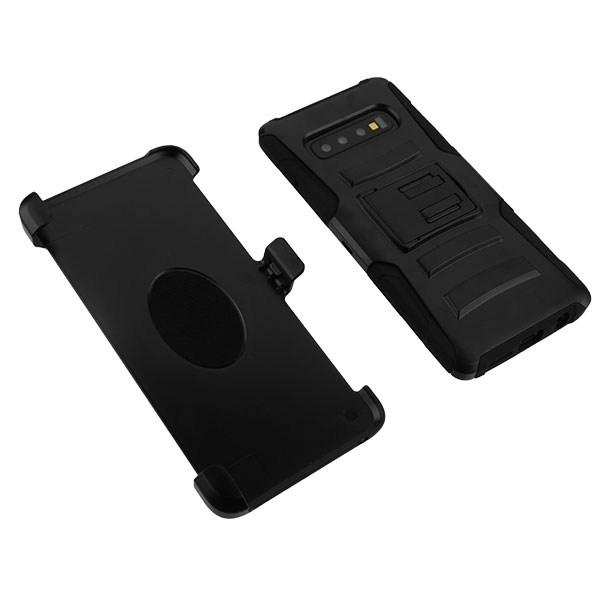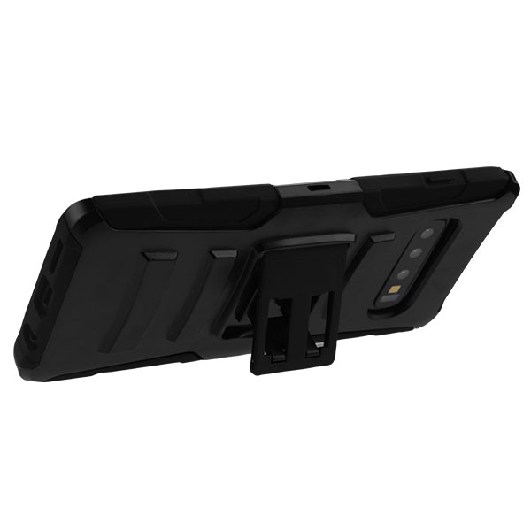 Asmyna Advanced Armor Stand Protector Cover Combo (with Black Holster) for Samsung Galaxy S10 - Black / Black