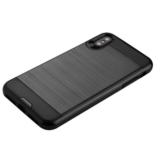 Asmyna Brushed Hybrid Protector Cover for Apple iPhone XS Max - Black / Black