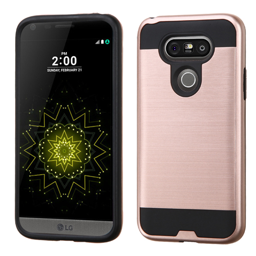 Asmyna Brushed Hybrid Protector Cover for Lg G5 - Rose Gold / Black