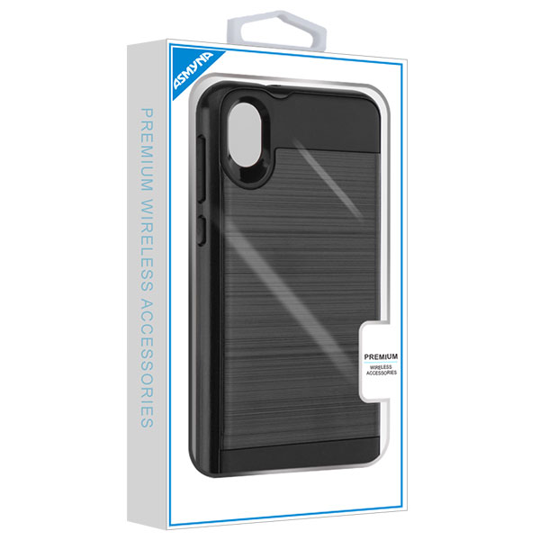 Asmyna Brushed Hybrid Protector Cover for Motorola Moto E6 - Black / Black