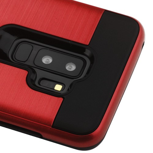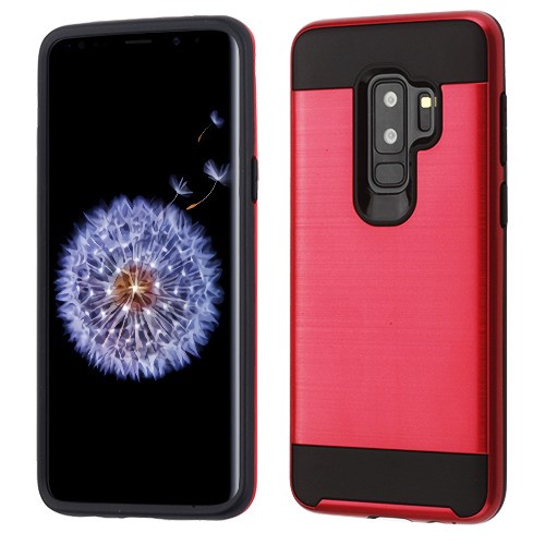 Asmyna Brushed Hybrid Protector Cover for Samsung Galaxy S9 Plus - Red / Black