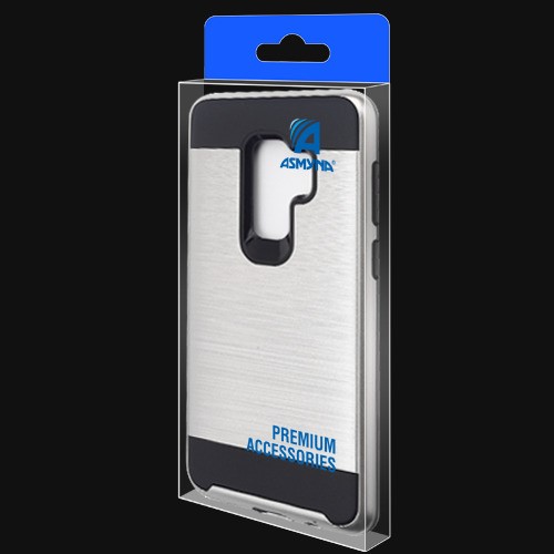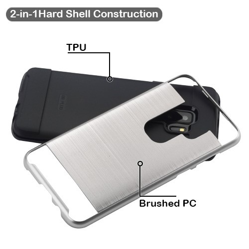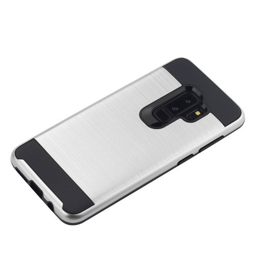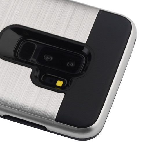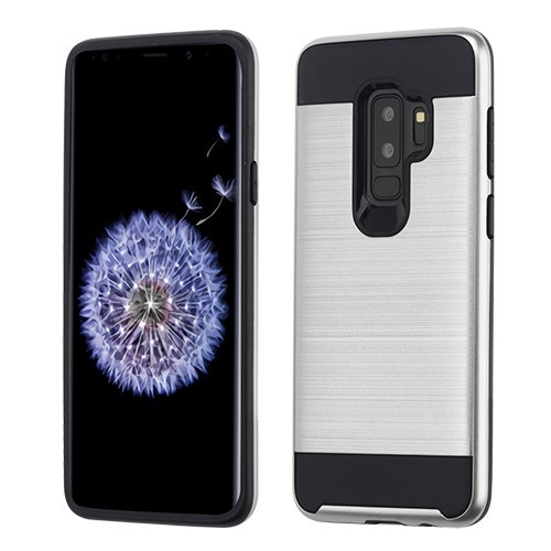 Asmyna Brushed Hybrid Protector Cover for Samsung Galaxy S9 Plus - Silver / Black