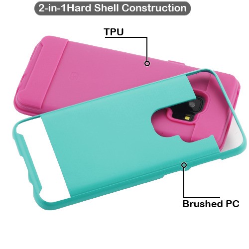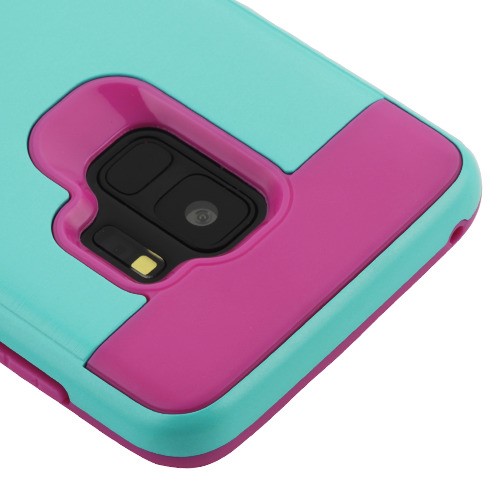 Asmyna Brushed Hybrid Protector Cover for Samsung Galaxy S9 - Teal Green / Hot Pink