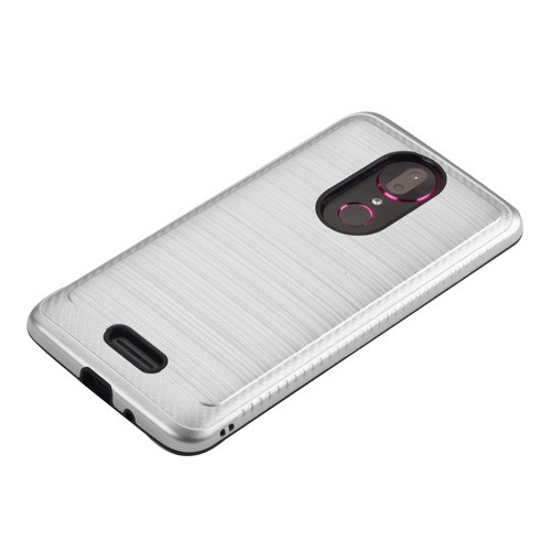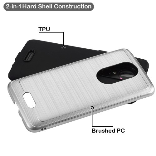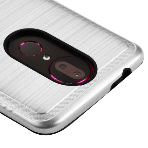 Asmyna Brushed Hybrid Protector Cover (with Carbon Fiber Accent) for Coolpad C3701A (Revvl Plus) / TMobile Revvl Plus - Silver / Black