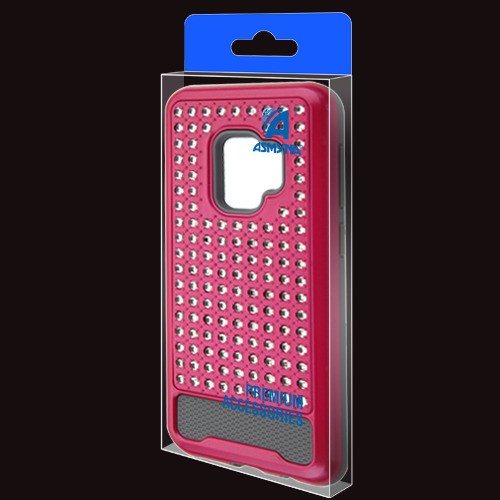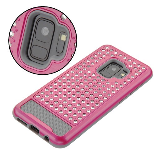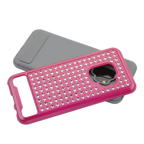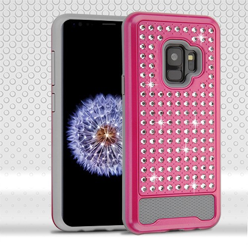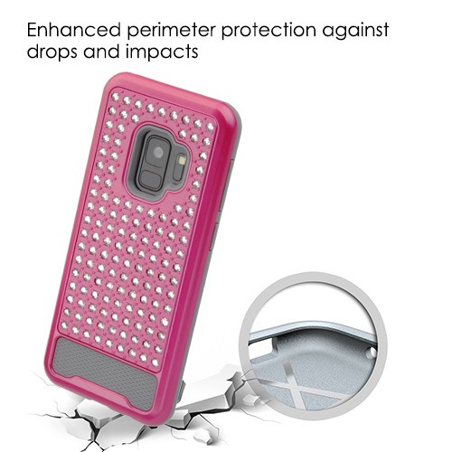Asmyna Diamante FullStar Protector Cover for Samsung Galaxy S9 - Hot Pink / Iron Gray