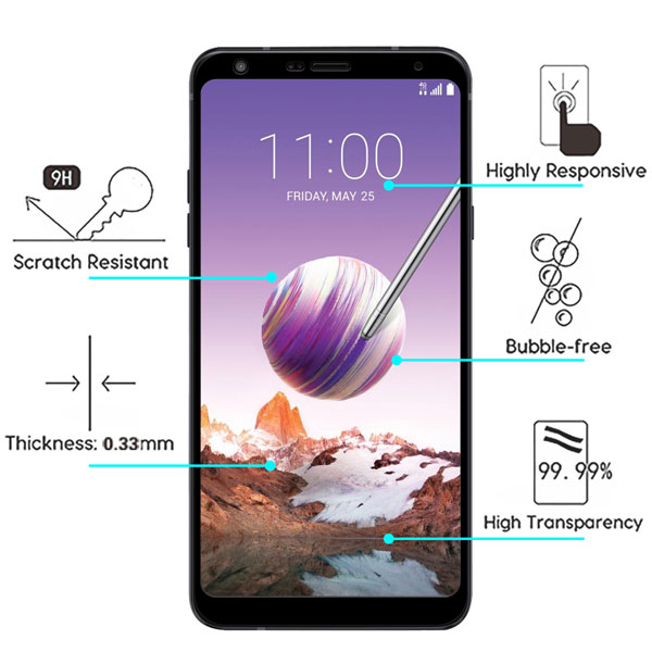 Get the ultimate double-edged protection with the high-performing MYBAT Tempered Glass Screen Protector for the curvaceous LG Stylo 5 Micro-grid technology ensures ultimate touch screen sensitivity and easy application without forming any air bubbles or watermarks in between the screen and the tempered glass screen protector Scratch-resistant surface, with 9H hardness, provides high resistance to shock and damage from sharp objects while providing maximum image clarity Polished, rounded-edge design offers a smooth feel to the perimeter while providing optimal impact protection to the screen Shatterproof technology keeps the user and phone safe from scratches and damages if broken Oleophobic coating prevents excessive fingerprints and oil stains from contaminating the surface, making it easy to clean