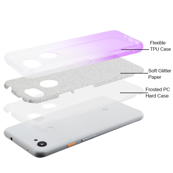 Asmyna Gradient Glitter Hybrid Protector Cover for Google Pixel 3a XL - Purple