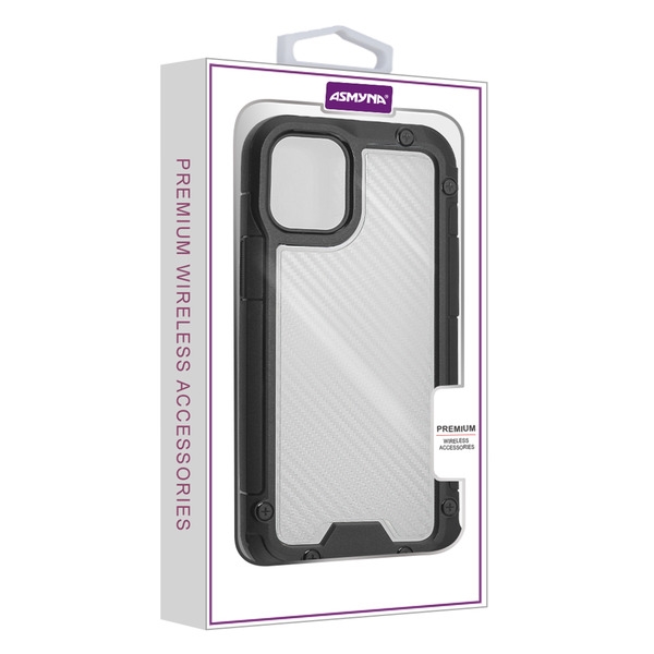 Asmyna Hybrid Case for Apple iPhone 12 mini (5.4) - Transparent Clear Carbon Fiber Texture / Black