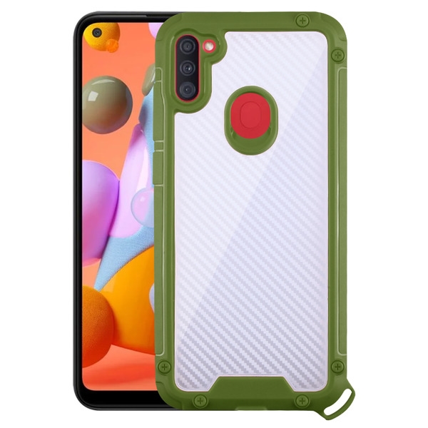 Asmyna Hybrid Case for Samsung Galaxy A11 - Transparent Clear Carbon Fiber Texture / Green