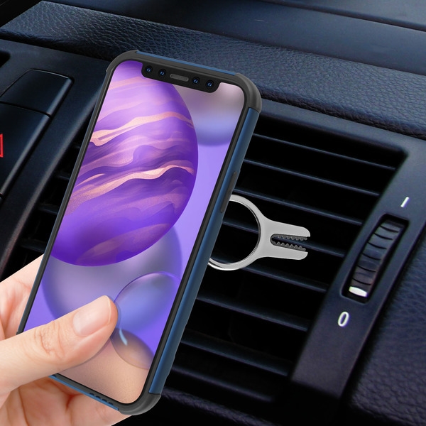 Asmyna Hybrid Protector Cover (with Ring Stand) for Apple iPhone 12 mini (5.4) - Ink Blue / Black