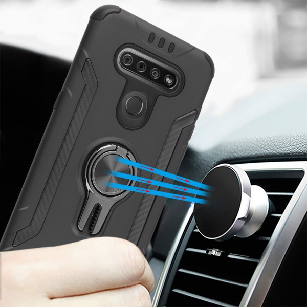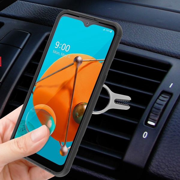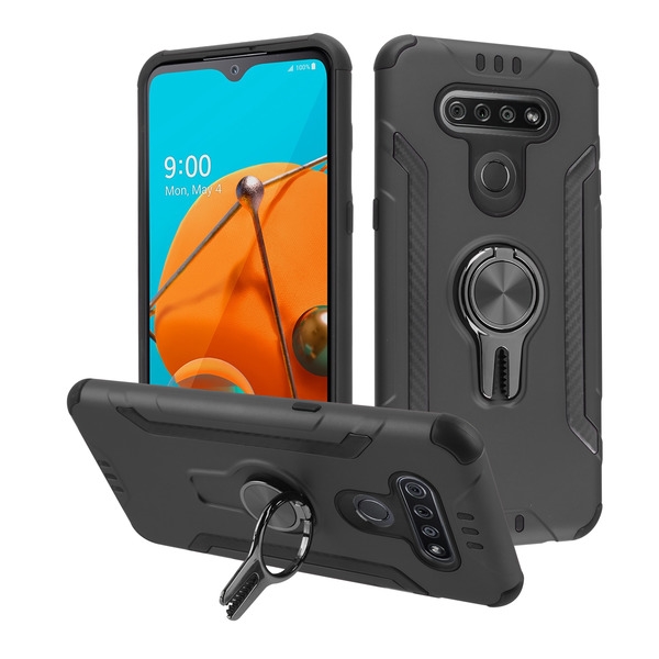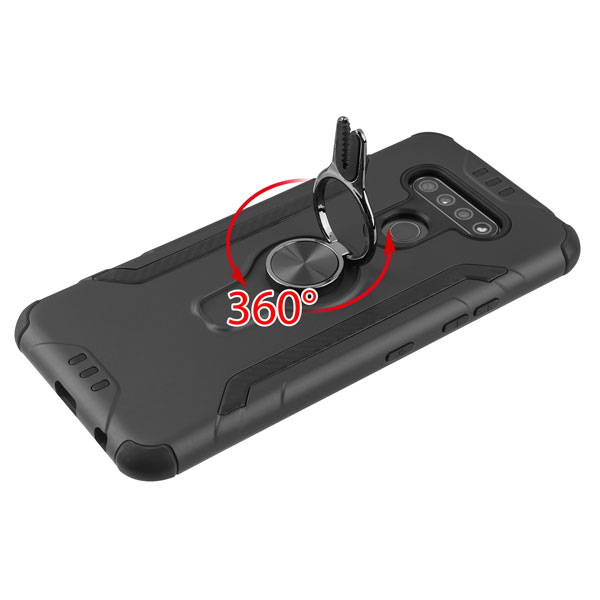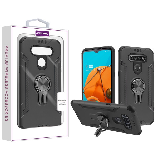 Asmyna Hybrid Protector Cover (with Ring Stand) for Lg K51 / Reflect - Black / Black