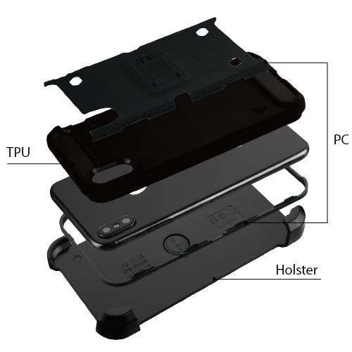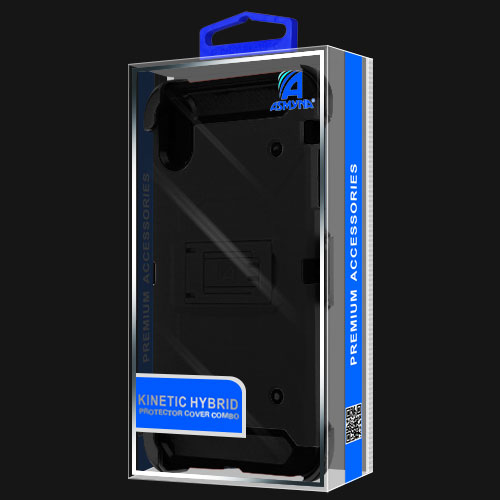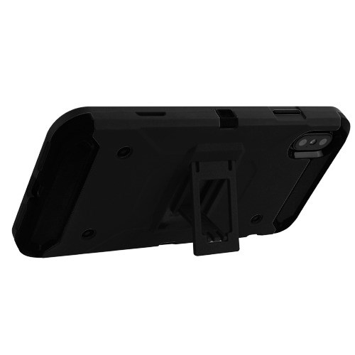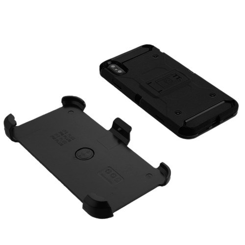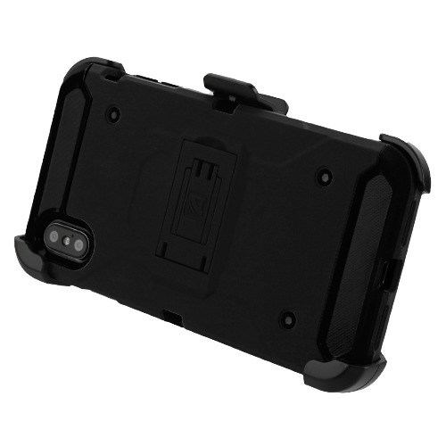 Asmyna Kinetic Hybrid Protector Cover Combo (with Black Holster) for Apple iPhone XS Max - Black / Black