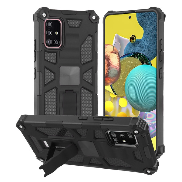 Asmyna Sturdy Hybrid Protector Cover (with Stand) for Samsung Galaxy A51 5G - Black / Black