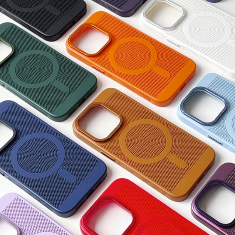 [Heat Dissipation Steel Mesh Mesh Breathable Case] : Mesh heat dissipation holes on the back and sides are designed to cooling better and prevent overheating, made of high quality PC material plus air holes design helps to release the heat, this Case will be your perfect choice in the hot summer days to give your phone a better protection. [Super Strong Magnetic Attraction & Compatible with magsafe] :for Magnetic Case with 38pcs N52 super strong magnets, making the magnetism 5 times stronger than other cases. Attaches securely to all MagSafe accessories such as Magsafe chargers, wallets, battery packs, car mounts, and won't fall off no matter how it rotates or swings. Enjoy a 20w high-speed charging experience without interfering with the signal. [Aluminum Alloy Button and Camera Bumper Protection] : phone case is innovatively equipped with separate aluminum alloy buttons, which are tactile, more sensitive and easier to press, restoring the touch of the phone's buttons; Equipped with a 4.0mm titanium alloy camera bumper lip, which is not easy to wear and tear, and is 1.5mm taller than the camera, which is strong and effective for protecting against any bumps and scratches that protects the phone's camera. [Ultra-thin Comfortable Design and Full Protection] : This case is only 0.3mm thick and features upgraded nano oleophobic and oxidized coatings, ultra-thin look and comfortable feel, slips easily into your pocket; this thin case offers maximum protection against scratches, chips and dirt buildup; easy to put on and take off, prevents scratches, dirt buildup, this case is a gift for your the best gift.