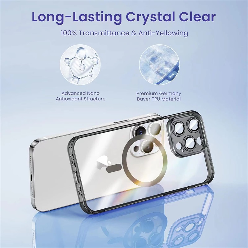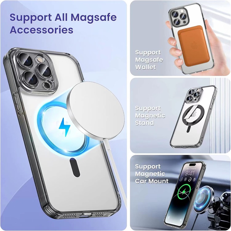 [Compatible with MagSafe]: Features built-in magnets designed to support magnetic wireless charging [NEWEST YELLOW RESISTANT TECHNIQUE ALWAYS KEEP CLEAR]: crystal clear case is crafted with a blend of optically clear polycarbonate and flexible materials. On the surface, a scratch-resistant coating has been applied to both the interior and exterior. All materials and coatings are optimized to prevent yellowing over time and can maintain the original look of your iPhone while still protecting it. Cut outs allow access to Charge Port, Speakers and Microphone. [UPGRADED ALL-AROUND DROP AND CORNERS PROTECTION]: clear bumper case, made of Innovative Shock-Absorbing material, meets the military drop-test standards, defending your iPhone against any visible damages. Built-in 4 corner airbags with exclusive ANTI-SHOCK Technology, effectively absorbing shocks and impacts. [UPGRADED PERIPHERAL SCREEN AND CAMERA PROTECTION]: The Edge of our transparent phone Case is Slightly Higher Than the Screen. Similarly, Around the Camera, it is also Higher Than the Lens. In this way, you can perfectly protect the screen and camera without worrying about being scratched or rubbed. Enhanced Raised Lips Design superior to other products in the market.