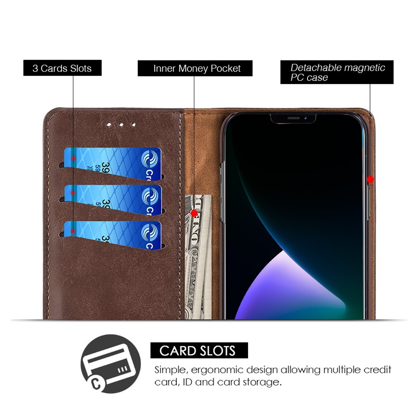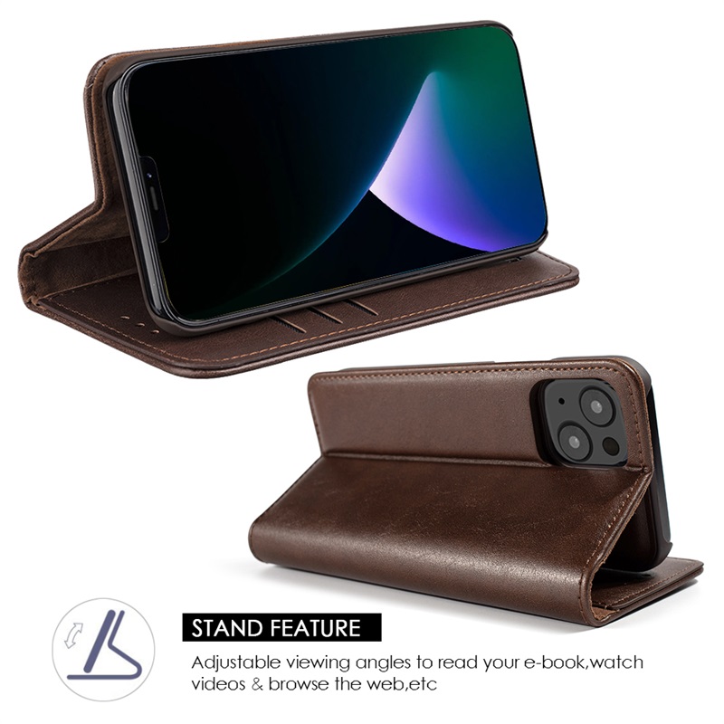 Dreamify USA The Luxury Gentleman Series 4 Wallet Case for iPhone 15 Plus (6.7) / iPhone 14 Plus (6.7) - Brown