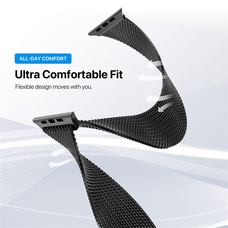 The echelon IronClad Stainless Steel Loop Apple Watch Band combines style, comfort, and durability for the modern wearer. Made from premium-grade stainless steel, its breathable metal mesh provides a soft, comfortable fit that’s designed for all-day wear. The flexible mesh offers superior pliability compared to traditional steel bands, while the secure magnetic clasp ensures a snug fit that won’t slip, even during intense activities. The IronClad brings sophistication and practicality to your Apple Watch, making it perfect for work, workouts, and everything in between. Features: Breathable Stainless Steel Mesh: Lightweight and airy mesh keeps your wrist cool and comfortable, even during intense activities. Flexible & Pliable Design: Moves naturally with your wrist, providing a comfortable fit ideal for workouts and everyday wear. Secure Magnetic Clasp: Strong magnet ensures a secure hold, keeping the band in place no matter the activity. Elegant & Durable Build: Crafted from premium stainless steel, blending style and long-lasting quality for versatile wear. Universal Fit for Apple Watch: Designed to fit all Apple Watch models seamlessly, enhancing both style and function.