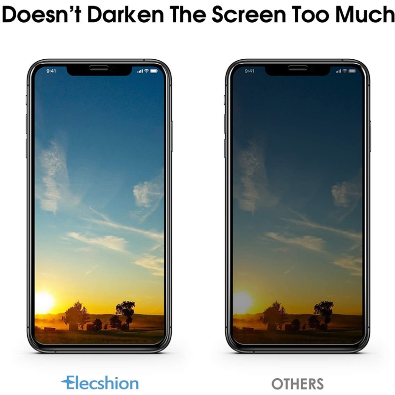 * Tempered Glass Privacy Screen Protector keeps your personal and sensitive information safe from strangers whether you hold your phone horizontally or vertically. (IMPORTANT: This screen protector is designed to filter out a portion of screen brightness. Your devices?? screen brightness will be reduced by 35% when this protector is in use. For optimal usage, turn up your preferred brightness during day to day operation.) * Designed with a hydrophobic and oleophobic coating and an anti-scratch surface to protect your screen from accidental spills, oil residue from fingerprints, bumps and daily wear-and-tear. * High Privacy: Keeps your personal, private, and sensitive information hidden from strangers, screen is only visible to persons directly in front of screen. Good choose when you are in the bus,elevator,metro or other public occasions.