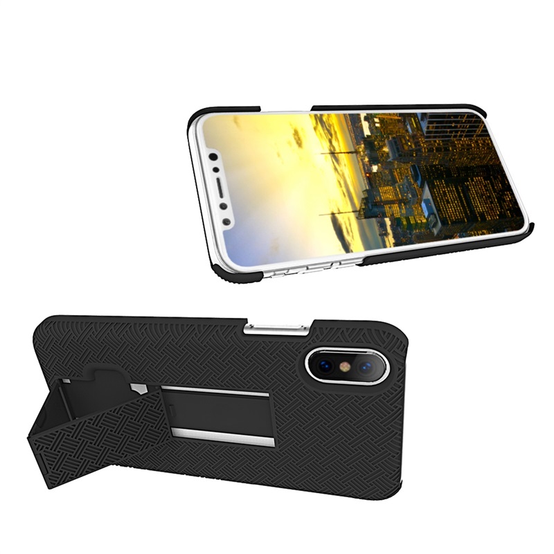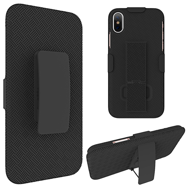 FOR IPHONE XS / X SNAP ON CASE SKEW PC WITH HOLSTER COMBO BLACK