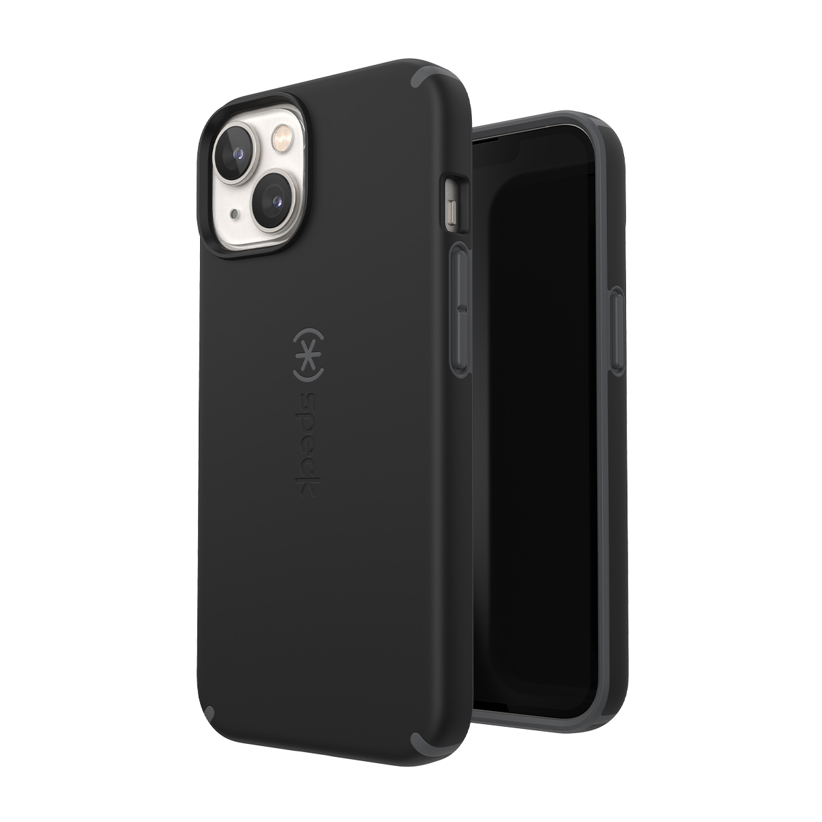The next generation of Speck's classic slim, pocket-friendly phone case for protection with added confidence. This polycarbonate dual-layer case with a scratch-resistant coating is sleek enough for uninterrupted wireless charging. The soft-touch finish adds an excellent hand feel, resists slips, and has improved hold for texting, gaming, and selfies. Plus, the patented dual-layer case is protected against drops up to 8 feet. Have confidence in protection that keeps your case fully accessible for cables, wireless charging, camera, and buttons. This case fits like a glove, and the anti-stretch design means it maintains its precise shape. Durable yet slim, this case allows for easy wireless charging with MagSafe® and Qi for a seamless charge.