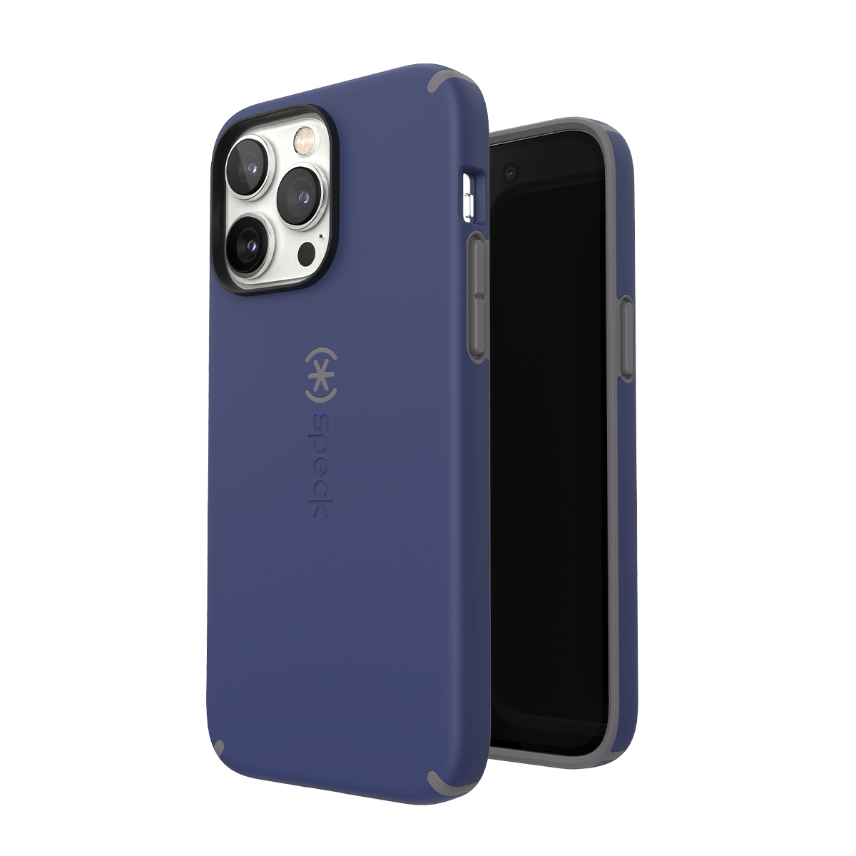 The next generation of Speck's classic slim, pocket-friendly phone case for protection with added confidence. This polycarbonate dual-layer case with a scratch-resistant coating is sleek enough for uninterrupted wireless charging. The soft-touch finish adds an excellent hand feel, resists slips, and has improved hold for texting, gaming, and selfies. Plus, the patented dual-layer case is protected against drops up to 8 feet. Have confidence in protection that keeps your case fully accessible for cables, wireless charging, camera, and buttons. This case fits like a glove, and the anti-stretch design means it maintains its precise shape. Durable yet slim, this case allows for easy wireless charging with MagSafe® and Qi for a seamless charge.