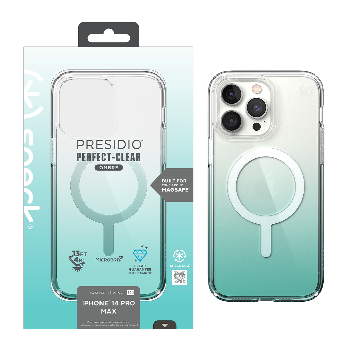 A bold, fade-resistant design that's sure to bring style to your device. This innovative case is made to stay clear longer and provide more protection and durability. Durable yet slim, this case is designed with precise magnets that are built for all Apple MagSafe® accessories. Not only is this case chic, but the built-in clear impact technology makes it tough for life's rough moments. The clear, phone-cushioning compound compresses on impact to protect your phone and resist damage, protecting against drops up to 13 feet.