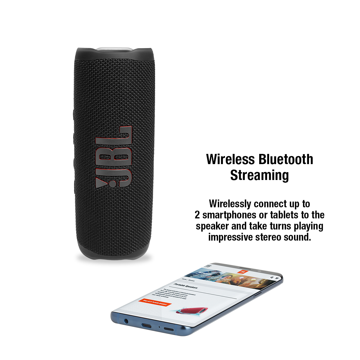 The JBL Flip 6 delivers powerful JBL Original Pro Sound with exceptional clarity. Thanks to it's 2-way speaker system, consisting of an optimized racetrack shaped driver, separate tweeter, and dual pumping bass radiators.