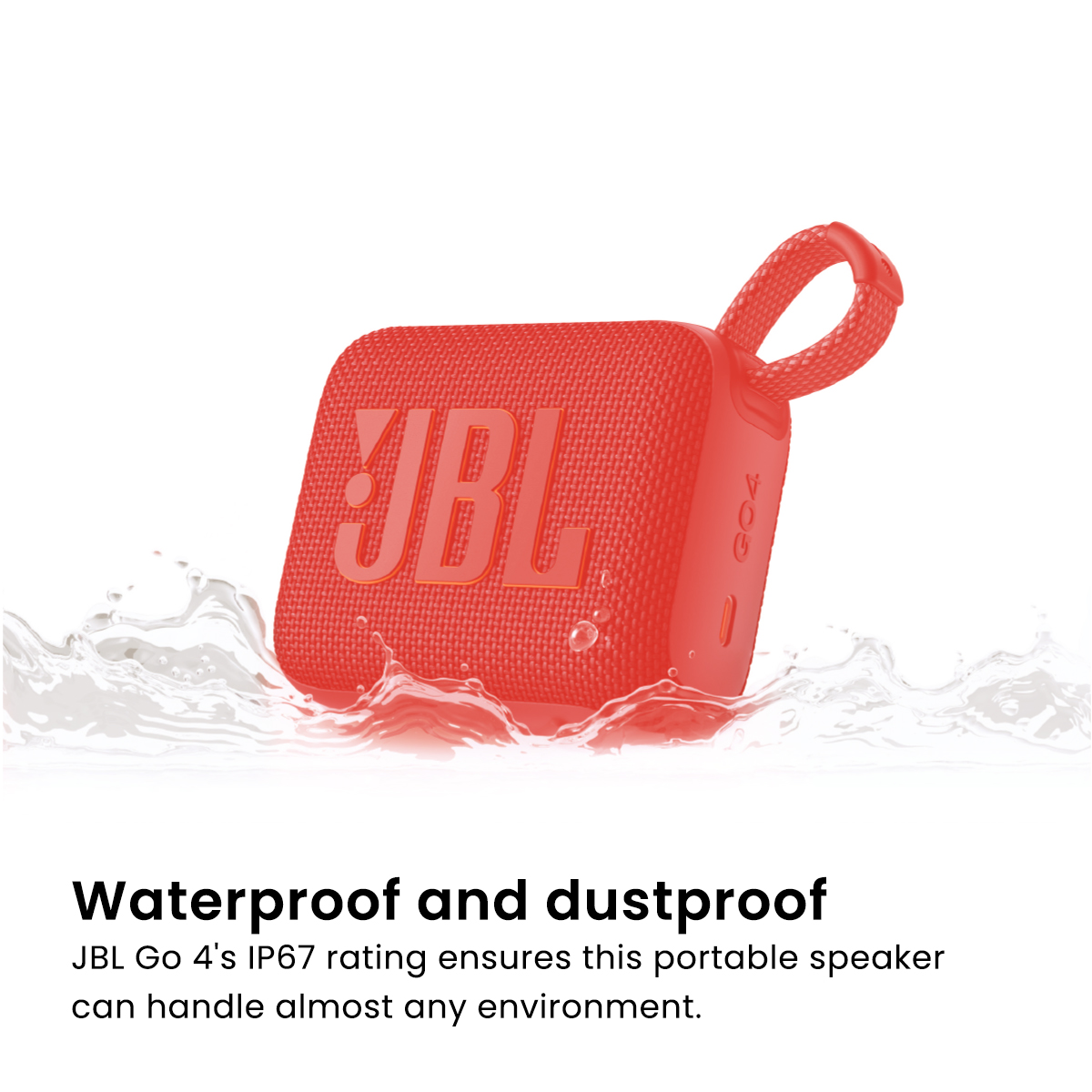 Grab and go. This bold, ultra-portable Bluetooth speaker fits in the palm of your hand, delivering clear, loud JBL Pro Sound with rich, punchy bass. Its newly redesigned integrated loop makes it easy to bring anywhere. Plus, it’s waterproof and dustproof with 7 hours of playtime to keep the good times rolling throughout a fun day trip or an evening chilling under the stars.