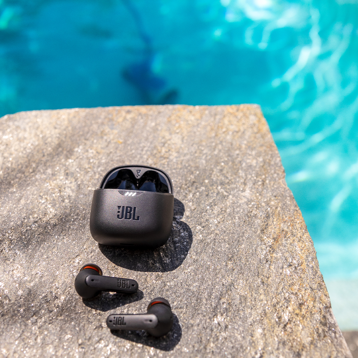 Pure bass. Zero noise. The Tune Flex are here to provide big sound in a small package. These true wireless earbuds give them long-lasting power and the exceptional audio that comes with the JBL name, along with an ergonomic and water-resistant design for all-day comfort in any weather.