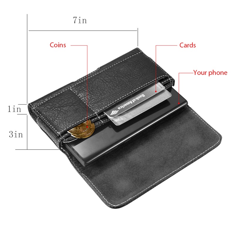 LUXMO Extra Large Horizontal Universal Leather Pouch w/ Card Slot - Black