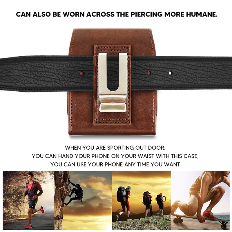 LUXMO Extra Small Universal Vertical Leather Pouch - Brown