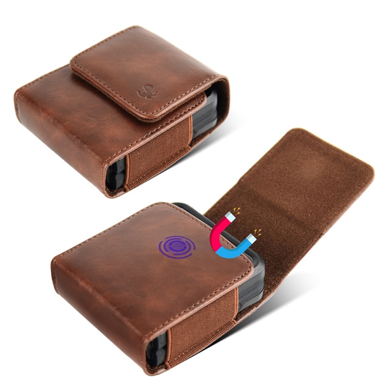 LUXMO #44 EXTRA SMALL SIZE 4 INCH 4.5 X 3 X 1 UNIVERSAL VERTICAL LEAETHER POUCH FOR FLIP DEVICES - BROWN